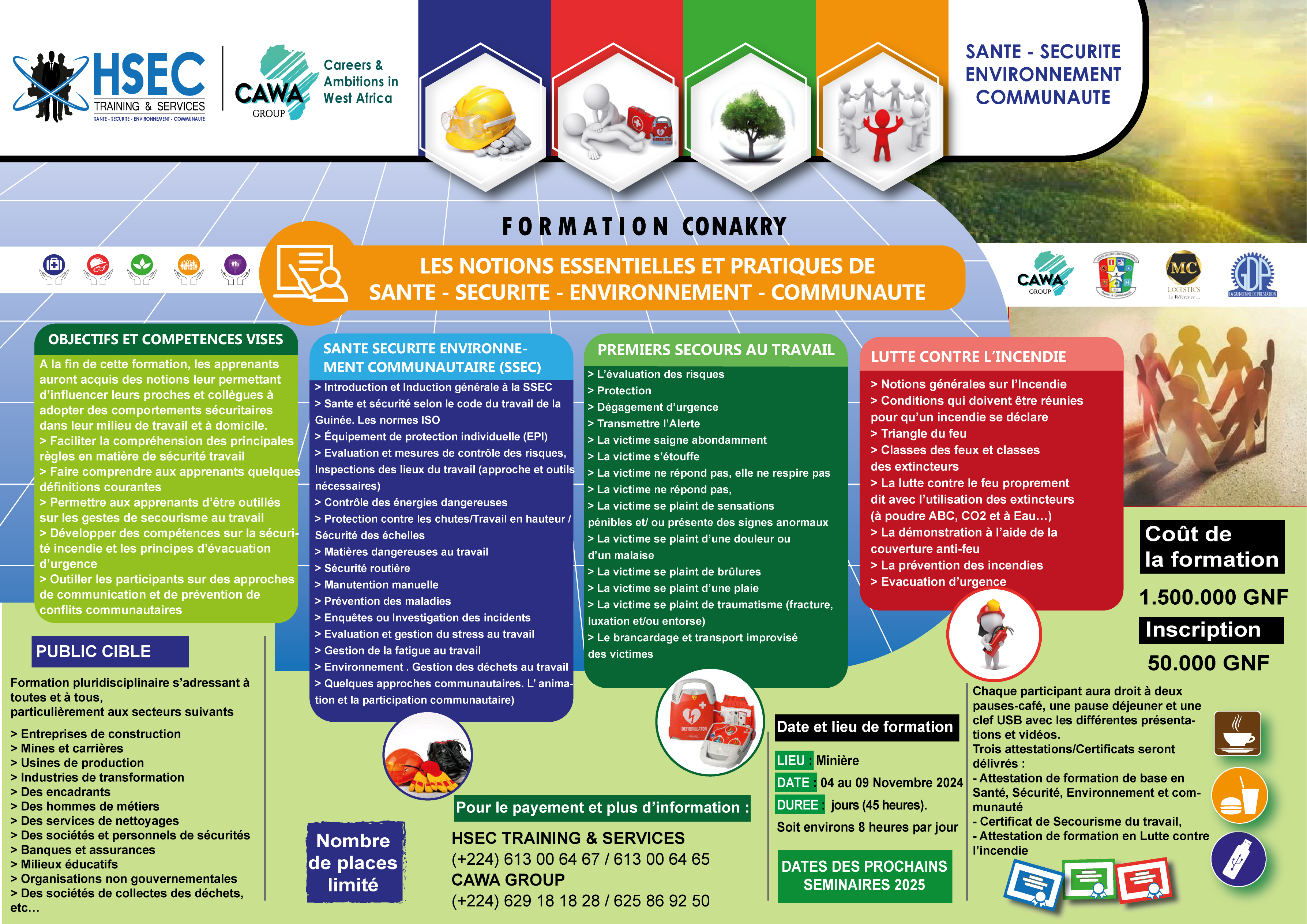 PROCHAINE SESSION DE FORMATION EN SANTÉ ET SÉCURITÉ AU TRAVAIL À CONAKRY